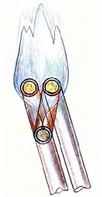 Возникал язык пламени длиной 10–15 см. Горело оно лишь несколько секунд, но успевало нагреть трубки горелки примерно до 200–300 °C. После этого из отверстия форсунки начинал выходить перегретый пар керосина, по существу — газ. Он горел у верхней части горелки чистым синеватым пламенем, без запаха и копоти.