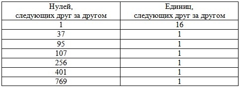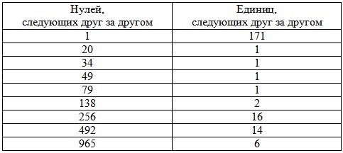 Однако третья страница ещё не закончила раскрывать свои секреты. Оставалась ведь ещё её вторая строка: длинная цепочка нулей и единиц, сгруппированных таким вот образом: