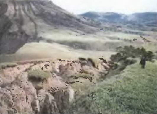 Линейный 300-х метровый провал, образовавшийся в результате землетрясения 4 октября 1994 года на острове Шикотан