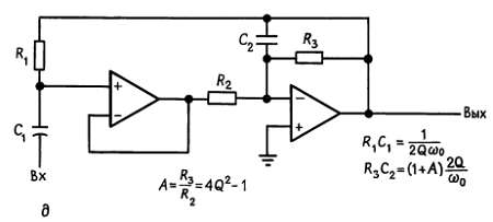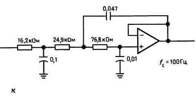 Рис. 5.51. к — фильтр Бесселя нижних частот 3-го порядка; для другого значения частоты среза необходимо провести масштабирование номиналов элементов;