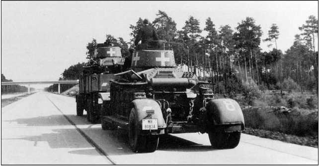 Танки Pz.38(t) Ausf.A во время транспортировки на грузовом автомобиле Faun L900D567 и прицепе Sd.Anh. 116. Автострада Бреслау — Лигниц (Вроцлав — Легница). Силезия, сентябрь 1939 года.
