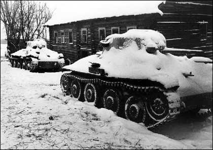 Брошенные при отступлении танки Pz.38(t). Район Тихвина, декабрь 1941 года.