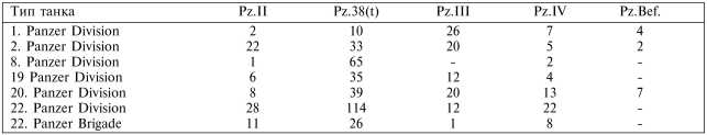 Боевой состав танковых соединений, имевших на вооружении Pz.38(t) (на конец июня — начало июля 1942 года)