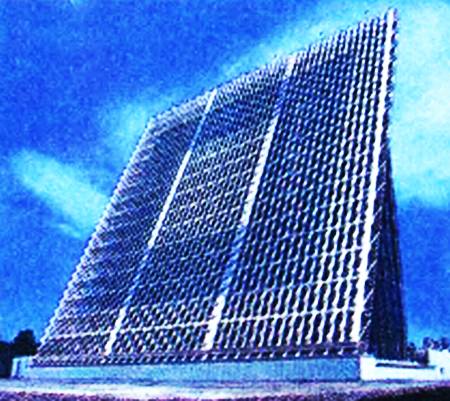 При этом, как известно, схема работы локатора такова. Он посылает в пространство направленный радиолуч. Часть излучения отражается ионосферой и попадает на цель. Отразившись от нее, радиоволна возвращается назад и улавливается приемной антенной. Очевидно, что лишь очень-очень небольшая часть посланного импульса, пройдя 5000 км, отразившись от полуметрового объекта сложной формы и пройдя еще 5000 км в обратном направлении, попадет на приемную антенну. Значит, передатчик должен быть мощным, а приемник — очень чувствительным. Но как этого добиться? Только ростом размеров антенн!