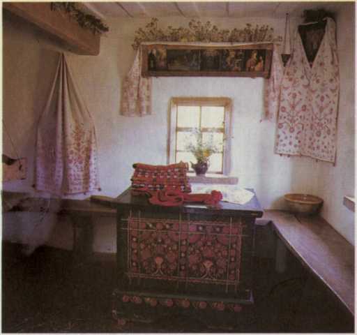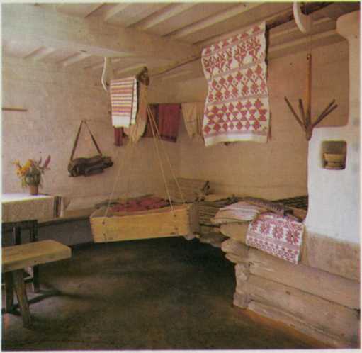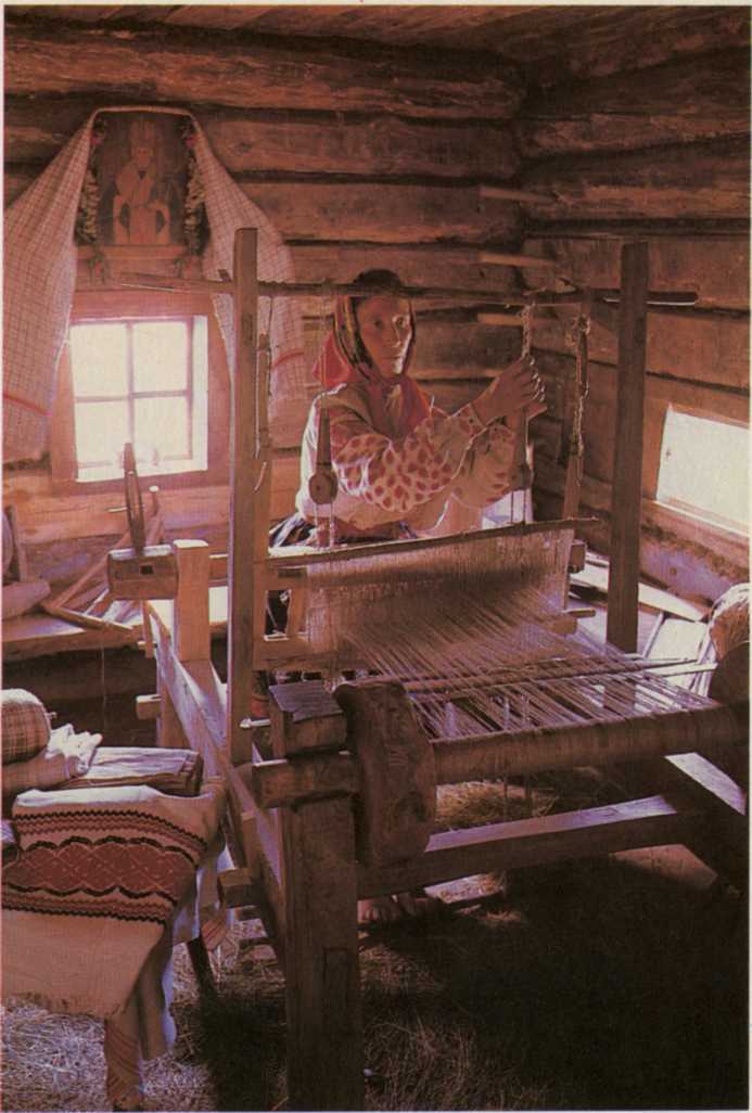 Спрядене прядиво йде до ткацького станка, шо його спорудження не складне, але вже далеко не примітивне; станок цей занесено до нас, як, мабуть, і до ВеликоросІЇ, найправдоподібніше з заходу. Ткацтво існувало на старій Русі з дуже далеких, мабуть, те доісторичних часів, але про будову первісного ткацького станка,— шо міг бути таким самим вертикальним, як у римлян (tela jugalis) та яким він дожив майже до наших часів в Ісландії та в північній Скандинавії,— нам, на жаль, нічого не відомо. А сучасний станок — верстат, або кросна,- на Україні скрізь більш-менш однаковий, хоч, наприклад, чернигівські кросна відзначаються тою примітивною особливістю. що в них начиння підіймається та спускається не на блоках, а на трубочках, цебто порожніх дерев’яних циліндриках, настромлених на патички, що лежать горизонтально. Порівняння технічних назв кросен по ріжних частинах України не позбавлене певного інтересу. Технічні терміни на Полтавщині та на Чернигівщині майже всі слав’янські, причім значно більше подібні до західиьослав'янських, наприклад, до сербських термінів, ніж до великоруських; а щодо термінів на Київщині та на Поділлі, то вони в значній мірі німецькі, полонізовані. Так, наприклад, замісць чернигівського воротила та сербського враіило (великоруський круг) на Київщині знаходимо триб (Triebrad), замісць набилок — барцохи тощо. Цілком можливо, що відносно удосконалений ткацький станок прийшов з Німеччини через Польщу до західньої України, де й затримались нові німецькі терміни, в той час як па північно-західній Україні вони почасти українізовані, а почасти переховались попередні.