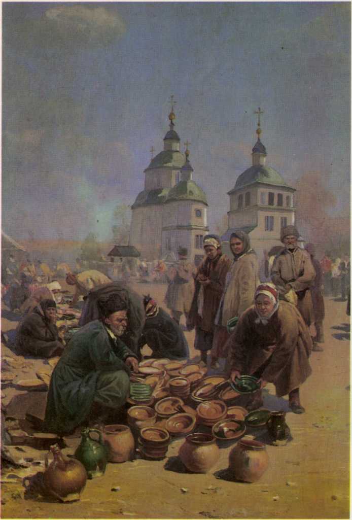 Гончарне мистецтво на Україні розвинулось у далеко більшій мірі, ніж у Великоросії, де й досі переважає головним чином дерев’яний посуд. В той час як на Україні ввесь посуд, без винятку, робиться на ножному колі, у Ве-ликоросії, особливо на півночі, утрималось ще й досі ручне гончарське коло, а витискання візерунків на посуді робиться ще й тепер за допомогою трісочки (Новгородська губернія). У Костромській губернії для міцности ще обплітають посуд смугами з березової кори. Цілком можливо, що менший розвиток гончарства у Великоросії залежить не тільки від великої кількости дерев’яного матеріялу, але й од етнічних впливів, головним чином фінських.