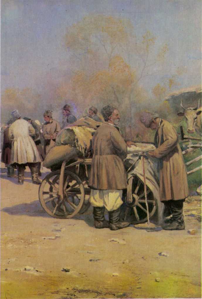 Полотно українські селяне виробляють майже виключно для домашнього вжитку і тільки дуже невелику частину його продають на ярмарках чи на базарі, а то віддають його «матушкам», кали вони об’їжджають парафії своїх чоловіків, щоб збирати датки натурою. Такий стан полотняного виробництва треба віднести до числа явищ штучно викликаного занепаду української промисловості!, бо ж, як свідчить І С Аксаков, ще півстоліття тому українське полотно постачали до Одеси, Єлисавегграда та до инших міст, І воно випирало полотно великоруське. Значно більше промислове значіння, ніж виріб полотна, має тепер ткання рушників, що € досить значним кустарним промислом в деяких місцевостях, а особливо в місті Кролевці на Чернигівщині. В цьому місті значна частина міщан чи міських селян мають у себе вдома невеликі верстаки, чи верстати, спеціяльно пристосовані для цієї мети. Рушники, що бувають переважно вузькі, тчуть на кінцях з візерунками, з поперечними лініями, смугами та иншнми геометричними мотивами. Ці мотиви скомбіновані з більш-менш стилізованих орлів, що, на думку В. Б. Антоновича, походять не від російського державного орла, а, разом із російським орлом, од візантійських орлів, що їх відтворювали, а иноді відтворюють і тепер на предметах архієрейської одправи; ці орли дуже легко перейшли й на рушники, бо ж рушники також мають літургічннй ужиток па архієрейських службах. На великих колекціях старовинних та сучасних кролевецьких рушників, що е в Київському та Чсрннгіпському Музеях та в Музеї Імп. Александра 111 в Петербурзі, можна, однак, простежити варіяції цих орлів, відповідно до відмін їх на грошах за ріжних царювань, а також і перехід рисунку цих орлів через послідовну стилізацію в цілком инші форми (букети тощо).