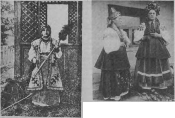 Як виріб повсті та грубої вовняної тканини, так І суконне виробництво Існувало » старій Київській Русі ще перед прийняттям хреста Звичайне селянське сукно й досі ще на Україні тчуть на такому самому верстаті, як і полотно, звичайно з иншими приладами, а потім валяють його на млинових валютах, щоб надати йому більшої гнучкости та м’ягкости. Кольор виробленого сукна б у Hat або натуральний, або штучний. З цілком білої вовни виробляють біле сукно, що йде на жіночі свити та юпки, що їх носять майже по цілій Україні, а також і на чоловічу та жіночу одежу на Угорській Русі. Біла вовна, мішана з чорною, дає сіре сукно, що його вживають на півночі України, особливо на Волині та в Галичині; в инших місцевостях сукно цього Kfwit.npy йде тільки на найдешевшу одежу для бідніших людей. В більшій частині України на чоловічу одежу вживають темне, сіро-брунатне сукно, що питім вигорає на сонці та ста* ясно-брунатним У північно-західній частині України виробляють також І цілком чорне сукно, переважно з фарбованої мішаної вовни, а в ГуцульшннІ фарбують переважно червцем на яскраво-червоннй кольор, що колись, мабуть, панував у цілій Галичині та, може, надав ЇЙ і назву Червоної Русн.