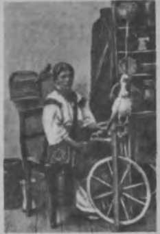 д) Обробка вовни розподіляється на Україні з одного боку на виріб повсті, а далі вже на виріб шапок — шаповальство, на плетення та ткання поясів, на виріб сукна І, нарешті, на ткання килимів, чн коцарство. Щодо повсті, чи лпмців, то це виробництво поширене в досить малій мірі та обмежується заготовленням цього матеріялу для підбивки хомутів, оббивки дверей тощо, а головним чином для виробу валенок. брилів та шолом те. чи яломків (шапок) Після обробки вовни на гак званій струні її накладають в кілька тонких верств на полотно, прискають водою, а потім, прикривши знову полотном, згортають, наверчують на «трубку», щоб вона була щільніша. Шерстобитн займаються також і виробом eo-ty, прядучи вовну на спеціяльному «станку». Але шерстобитство та прядіння вовни тепер уже майже цілком завмерлі ремества; їх заступає машинова обробка вовни, що значно ліпша, безпечніша для здоров'я і значно дешевша.