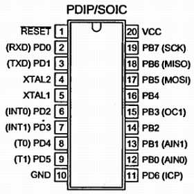 Рис. 2.1. Выводы микроконтроллера AT90S2313