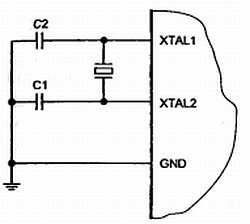 Рис. 2.2. Подключение кварцевого резонатора к микроконтроллеру