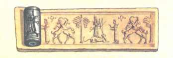 Дальше халцедоновый и агатовый след мы встречаем в руинах великих цивилизаций Двуречья и Месопотамии: Шумере, Аккаде, Вавилоне, Ассирии, где дворцы и колоссальные ступенчатые храмы — зиккураты, библиотеки и сами «книги» — все воздвигалось и созидалось из глины. В древних государствах Двуречья, где любой камень — редкость и ценность, халцедоны явились воплощением земной тверди. И вот в самой древней и, пожалуй, самой удивительной из этих стран, а именно в Шумере, в начале III тысячелетия до н. э. было сделано поразительное открытие: если вырезать картинку не на плоскости, а на маленьком каменном цилиндре диаметром 1 — 1,5 см, то отпечаток с нее можно «раскатать» в целую полоску длиной уже 3 см. И экономно, и удобно. На этих отпечатках с цилиндрических месопотамских печатей можно видеть целые сцены из жизни людей и богов: сражения героев и богов с мифическими и реальными животными, приношение дани богам и царям или изображения различных животных и сказочных существ.