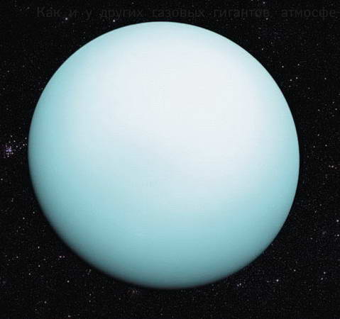 Уран — седьмая от Солнца планета Солнечной системы. Он расположен так далеко от Земли, что даже в ясные ночи едва различим невооружённым глазом, так что Урану было суждено стать первой планетой, открытой в XVIII в. с помощью телескопа. Первооткрывателем Урана считается английский музыкант и астроном немецкого происхождения Уильям Гершель. Самой примечательной особенностью Урана является нетипичный для планет Солнечной системы наклон оси его вращения к плоскости орбиты: около 98°. Из-за этого на планете наблюдаются очень сильные сезонные изменения погоды. Каждый полюс гиганта по 42 года находится в темноте и по 42 года — на солнечной стороне, а на экваторе бывает по две зимы и два лета, продолжающиеся по 20 лет.