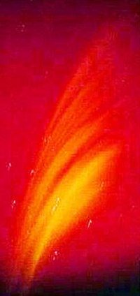 Помимо Комптон-эффекта, при ядерном взрыве на большой высоте происходят и другие взаимодействия, вызывающие переходы атомов (в основном — кислорода и азота) на возбужденные уровни и последующее их высвечивание в различных областях видимой части спектра. Становится видна структура магнитных силовых линий нашей планеты (внизу), а также происходит красивое явление, известное как «северное сияние» (естественным образом оно вызывается потоками заряженных частиц от вспышек на Солнце).