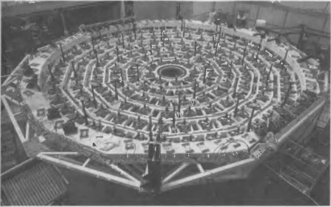 Рис. 3.29. Оправа главного зеркала одного из телескопов VLT. Видны выступающие вверх «пальцы» 150 актюаторов, управляющих формой 8,2–метрового зеркала.