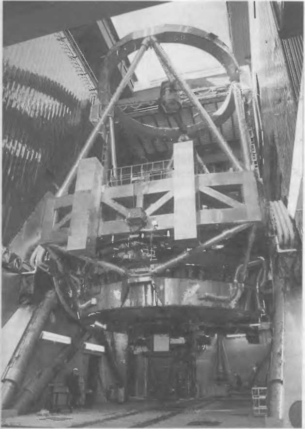 Рис. 3.32. Телескоп «Субару» в башне на вершине Мауна-Кеа. При диаметре зеркала 8,3 м телескоп весит 500 т. Фокусное расстояние главного зеркала 15 м.