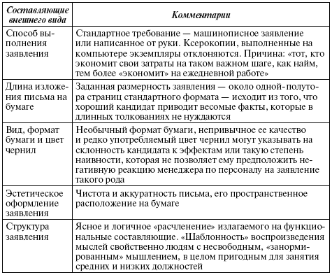 Внешний вид заявления должен дать предприятию первое представление о личности нанимаемого и серьезности его намерения (табл. 5.15).