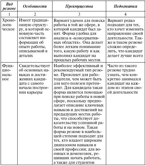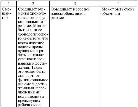 Различают три основных вида резюме: хронологическое, функциональное и функционально-хронологическое (смешанное) (табл. 5.18).