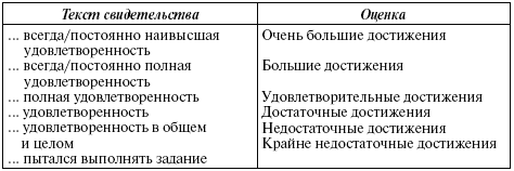 Значимость и весомость результатов школьных аттестатов снижаются с возрастом кандидата и временем окончания школы. Для анализа школьных свидетельств может использоваться, например, методика «соотношения достижений» немецкого ученого Рюдигера (табл. 5.19).