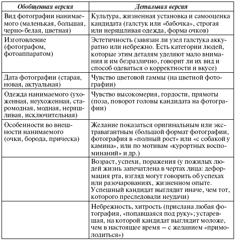 – личностный портрет кандидата (например, эгоизм, терпение, веселый нрав, холодность, чувство низкой самооценки, бесцеремонность и т. д.);