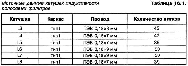 «А»: Безусловно. Итак, что касается полосовых диапазонных фильтров, то их данные приводятся в табл. 16.1.