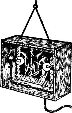 Закройте ящик стеклами с противоположных сторон. При этом на стенках изнутри наклейте предварительно слова: «Тише, идут занятия». Буквы для этих слов вырежьте из черной бумаги или напишите аккуратно черной эмалью или лаком. Наклейте на всю поверхность стекла поверх букв кальку, вверните в патроны электрические лампочки мощностью 15–20 ватт. В верхней и нижней стенках ящика просверлите отверстия для вентиляции — и табло готово. Внешний вид табло со снятым стеклом показан на рисунке 40.