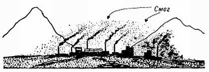Смоговые ситуации, граничащие с катастрофическими, нередко наблюдаются в промышленных районах Англии, расположенных в долинах, а также в Лос-Анжелесе; смог — вечный бич этих мест.