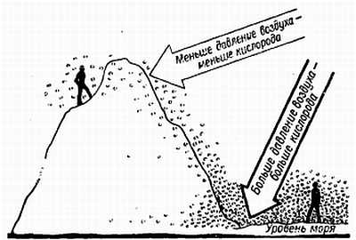654. Что такое горная болезнь? Попадая в горные селения, лежащие на высоте 3000–3600 м над уровнем моря, люди, непривычные к высоте, обычно испытывают симптомы горной, или высотной, болезни; причиной ее является резкий переход к условиям очень низкого атмосферного давления и пониженного содержания кислорода. Симптомы этой болезни — затрудненное дыхание, усиленное сердцебиение, потеря аппетита, а иногда — кровотечение из носа.