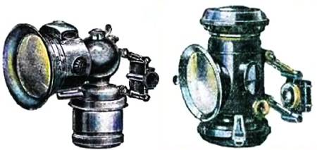 Ацетиленовый фонарь состоял из застекленного металлического корпуса, защищавшего пламя от ветра, и похожей на букву «У» керамической горелки, дававшей яркое плоское пламя. Рядом с фонарем ставился и карбидный генератор ацетилена. Весь комплект размещали снаружи экипажа, избавляя пассажиров от вредного газа.