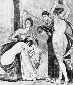 Главное ее сокровище – стенные росписи, частично сохранившиеся до наших дней: это египетские мотивы и дионисийские темы. Название вилле дал Зал дионисийских мистерий, на стенах которого (по предположениям ученых) показан ритуал посвящения в мистерии Диониса одной знатной женщины, возможно, хозяйки дома. Дионисийский культ, распространенный в Этрурии и Кампании, в Риме был запрещен специальным указом сената. Но все запреты были напрасны – ведь посвящения в таинства, приобщение к богу бессмертия обещали блаженство в мире ином. Роспись виллы, может быть, была заказана хозяйкой дома, поклонницей (или даже жрицей) Диониса.