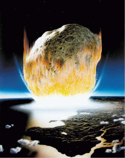 Падение на Землю гигантского астероида в представлении художника