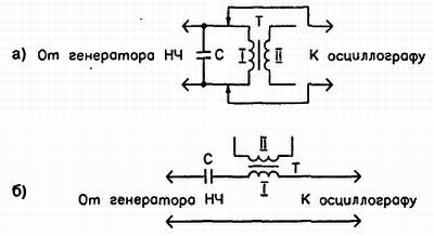 Рис. 4.9. Схема проверки трансформатора при использовании параллельного (а) и последовательного (б) резонанса
