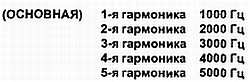 Частоты высших гармоник кратны частоте основной гармоники. Частота второй гармоники вдвое выше частоты основной гармоники, частота третьей гармоники втрое выше частоты основной гармоники и т. д. На рис. 30-2 приведена основная частота 1000 герц и несколько ее гармоник.