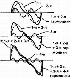 Гармоники могут комбинироваться бесконечным числом способов и составлять любое периодическое колебание. Тип и число гармоник, необходимых для составления сигнала, зависит от формы этого сигнала. Например, на рис. 30-3 изображен сигнал прямоугольной формы.