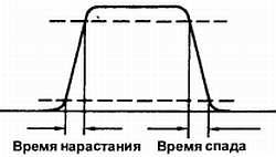 • Время нарастания импульса — это время, необходимое для увеличения импульса от 10 % до 90 % от величины максимальной амплитуды.