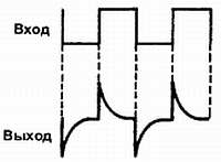 Рис. 30–12. Преобразование сигнала прямоугольной формы на выходе дифференцирующей цепи.