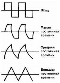 На рис. 30–16 показано влияние различных постоянных времени RC цепи.