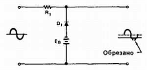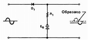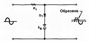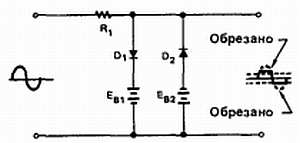 Рис. 30–25. Ограничитель, используемый для ограничения сигнала и с положительной, и с отрицательной сторон.