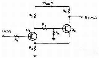 Одним из применений триггера Шмитта является преобразование синусоидальных, пилообразных и других колебаний в колебания прямоугольной формы. Эта цепь отличается от обычного бистабильного мультивибратора тем, что одна из цепей связи заменена резистором (R3), общим для обоих эмиттеров, и это обеспечивает дополнительное восстановление сигналов для ускорения работы цепи и спрямляет передний и задний фронты выходных импульсов.