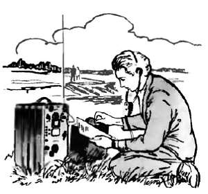 К другому концу провода через нагрузочный резистор сопротивлением около 400 Ом присоединяют противовес — несколько отрезков провода длиной, равной примерно четверти длины рабочей волны радиостанции. Провод такой антенны с помощью колышков, входящих в комплект радиостанции, подвешивают горизонтально над землей на высоте 1 м. При этом ось провода антенны должна совпадать с направлением на корреспондента и «смотреть» на него нагрузочным резистором с противовесом. В этом направлении антенна и излучает большую часть электромагнитной энергии и много лучше чем с других направлений принимает радиоволны. Такую антенну хорошо использовать, когда радисту приходится работать в блиндаже, подвале, окопе или другом укрытии. Точно так же можно вынести из укрытия и штыревую антенну, соединив ее с приемопередатчиком высокочастотным кабелем. Но по эффективности работы штыревая антенна уступает лучевой.