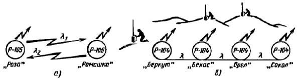 Рис. 405. Схема радиосвязи: а — по радионаправлению: б — в радиосети