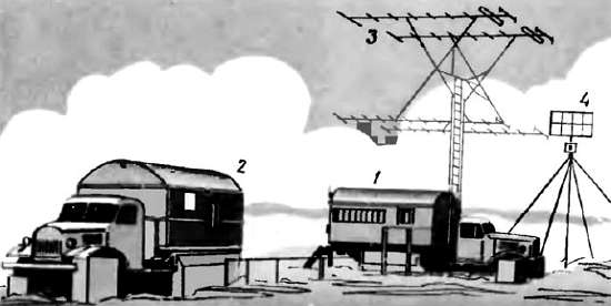 1 — аппаратная машина; 2 — силовая машина; 3 — антенна РЛС; 4 — антенна запросчика