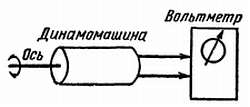 Рис. 18. Динамомашина вырабатывает напряжение, величина которого пропорциональна скорости вращения; измеряя напряжение, можно определить скорость вращения.