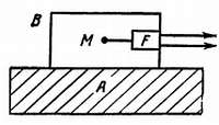 Рис. 19. Акселерометр представляет собой коробку В, прочно соединенную с подвижным предметом А. В этой коробке сила инерции массы М воздействует на преобразователь силы F, когда А испытывает ускорение.