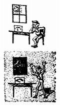 Н. — Любознайкин! Разве ты никогда не читал романов Майна Рида или Фенимора Купера? Ведь всем известно, что главный вождь прикладывает ухо к земле, чтобы услышать стук копыт лошадей своих врагов или кареты, на которую индейцы собираются напасть.