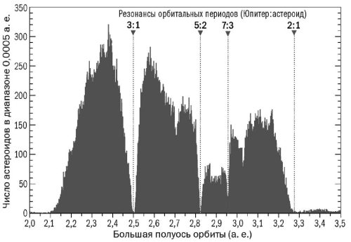 ЛЮКИ КИРКВУДА – узкие области в пределах пояса астероидов, где обнаруживается значительно меньше малых планет, чем в соседних с ними областях. Впервые существование этих «провалов» в распределении средних расстояний астероидов от Солнца подметил в 1857 г. американский астроном Дэниел Кирквуд (1814–1895), определив, что орбитальное движение частиц в люках происходит в резонансе с движением Юпитера. Особенно заметны люки Кирквуда, в которых отношение орбитального периода к периоду Юпитера составляет 1: 2, 1: 3, 1: 4, 2: 5, 3: 7. В то же время в области резонанса 2: 3 наблюдается избыток астероидов (группа Гильды), а в резонансе 1:1с Юпитером (т. е. по его орбите) движутся две многочисленные группы астероидов-троянцев. Природа люков Кирквуда до сих пор не вполне ясна.