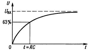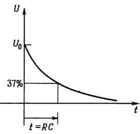Постоянная времени. Произведение RC называют постоянной времени цепи. Если R измерять в омах, а С — в фарадах, то произведение RC будет измеряться в секундах. Для конденсатора емкостью 1 мкФ, подключенного к резистору сопротивлением 1 кОм, постоянная времени составляет 1 мс, если конденсатор был предварительно заряжен и напряжение на нем составляет 1 В, то при подключении резистора в цепи появится ток, равный 1 мА.