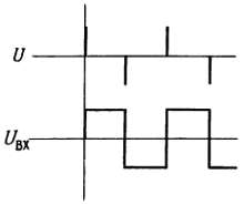 Например, если на вход подать прямоугольный сигнал Uвх, то сигнал на выходе U будет иметь форму, показанную на рис. 1.33.