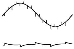 Первый участок экспоненты (интеграл от почти постоянной величины) — прямая с постоянным углом наклона; при увеличении постоянной времени RC используется все меньший участок экспоненты, тем самым обеспечивается лучшая аппроксимация идеального пилообразного сигнала.