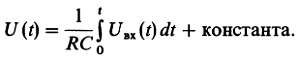 Отметим, что условие U << Uвх равносильно тому, что ток пропорционален напряжению Uвх. Если бы в качестве входного сигнала выступал ток I(t), а не напряжение, то мы получили бы идеальный интегратор. Источником тока может служить резистор с большим сопротивлением и с большим падением напряжения на нем, и на практике часто пользуются этим приближением.